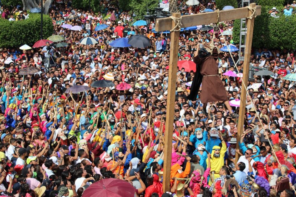 Esta festividad destaca por su singular representación del viacrucis, la cual combina elementos religiosos con un enfoque satírico, colorido y lleno de simbolismo, atrayendo tanto a habitantes como a visitantes de la región.